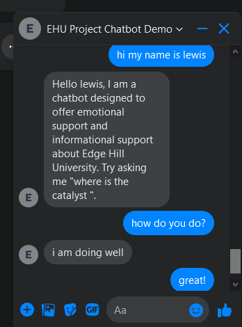 A chatbot tool intended to act as an informative and emotional support for fellow students at my university with information specific to the domain (Edgehill University). This was created as my final year dissertation project and so covered the planning, design and research needed to justify and create the tool itself. The development process used Tensorflow's Keras Seq2Seq Deeplearning model to create the chatbot and then was hosted temporarily on Facebook messenger for use.