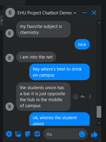 I chose to create a chatbot for my dissertation as I had recently finished my machine learning module at the time and found a strong interest in DeepLearning that I wanted to expand. I used my dissertation as an opportunity to learn more about the topic and felt that a chatbot was a suitable method for doing so. It should be noted that at the time of development, ChatGPT had yet to be released and AI was yet to have the major breakthrough that we're living with today.
